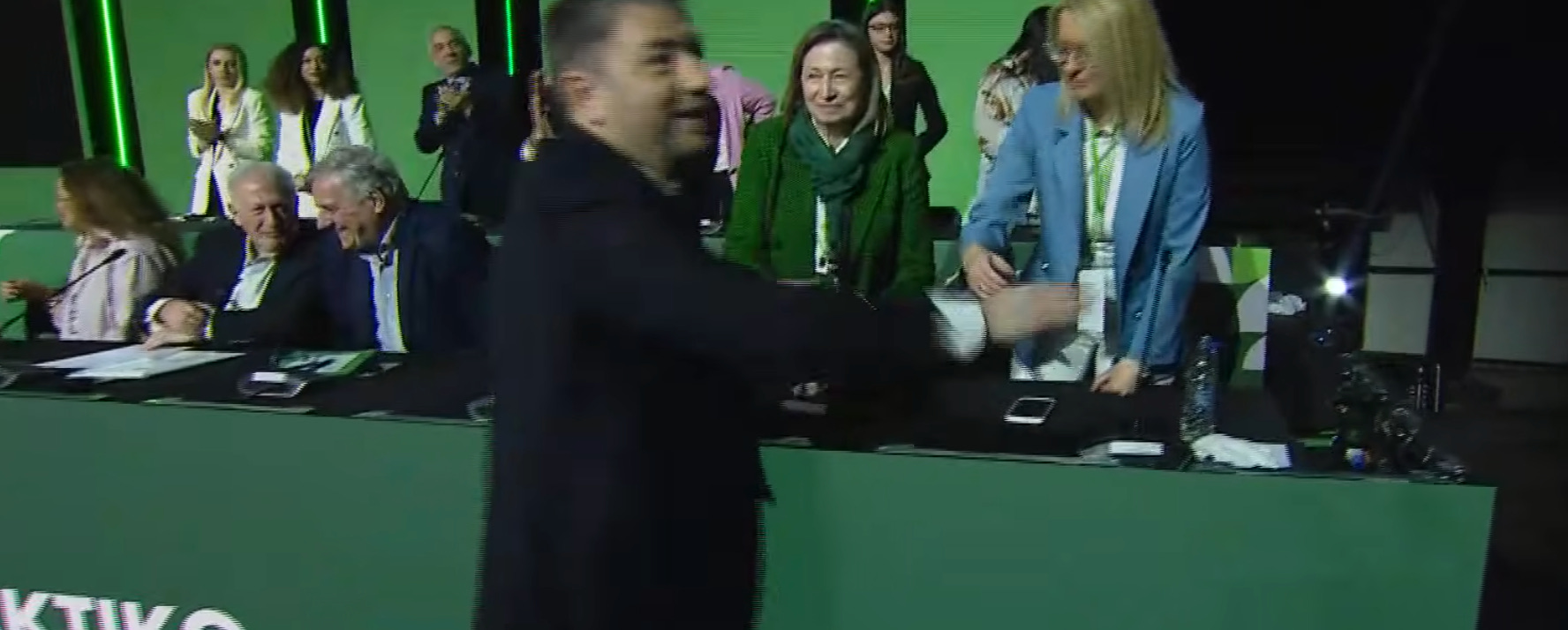 Και κάπου εκεί στο προεδρείο και την εφορευτική επιτροπή, ήταν και η Βαγγελιώ Σχοιναράκη, ενώ στην πρώτη γραμμή ο Σταύρος Αρναουτάκης και δυο σειρές πιο πίσω, εντόπισε το μάτι τον Μανόλη Κοκοσάλη. Προφανώς, ήταν πολλοί Κρητικοί, αλλά στα γρήγορα πλάνα, αυτούς πρόλαβε το μάτι!