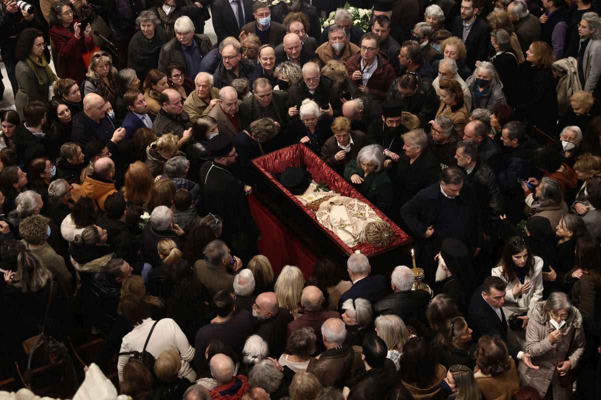 Ακολούθησαν το φέρετρο, φωνάζοντας «Άγιος» και «Άξιος» και το έραιναν με δάφνες, έως το εσωτερικό του ναού, όπου από τον Μητροπολίτη Αργυροκάστρου Δημήτριο εψάλη τρισάγιο στη μνήμη του.