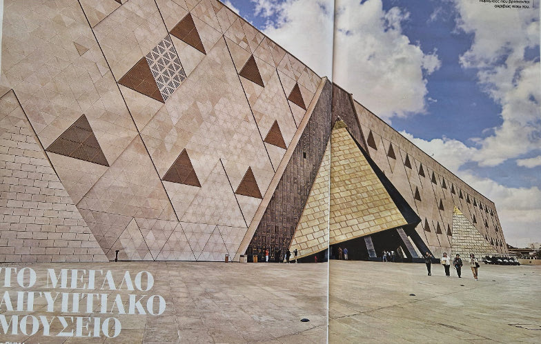 Το πελώριο κτήριο αν το δεις από ψηλά έχει σχήμα λοξού τριγώνου, με την πρόσοψη σχεδιασμένη επίσης με τη μορφή τριγώνων, ώστε να αντανακλά συμβολικά τις πυραμίδες της Γάζας. Αντίθετα, εμείς ψάχνουμε μια πολύ μικρή έκταση σε θέση μακριά από την Κνωσσό μας, αντί να φορτίσουμε να δημιουργήσουμε ένα αντάξιο Μουσείο, που θα αποτελεί ένα σύνολο με την Κνωσσό, ισοδύναμο αυτού του Καΐρου και της Ακρόπολής μας.
