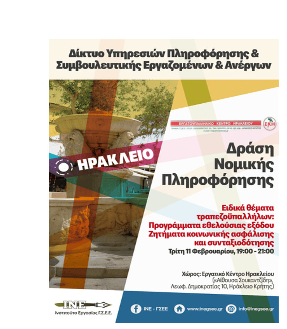 Η δράση θα πραγματοποιηθεί την Τρίτη 11 Φεβρουαρίου από 19.00 έως 21.00, στο Εργατικό Κέντρο Ηρακλείου («Αίθουσα Σουκαντζίδη», Λεωφ. Δημοκρατίας 10, Ηράκλειο Κρήτης).