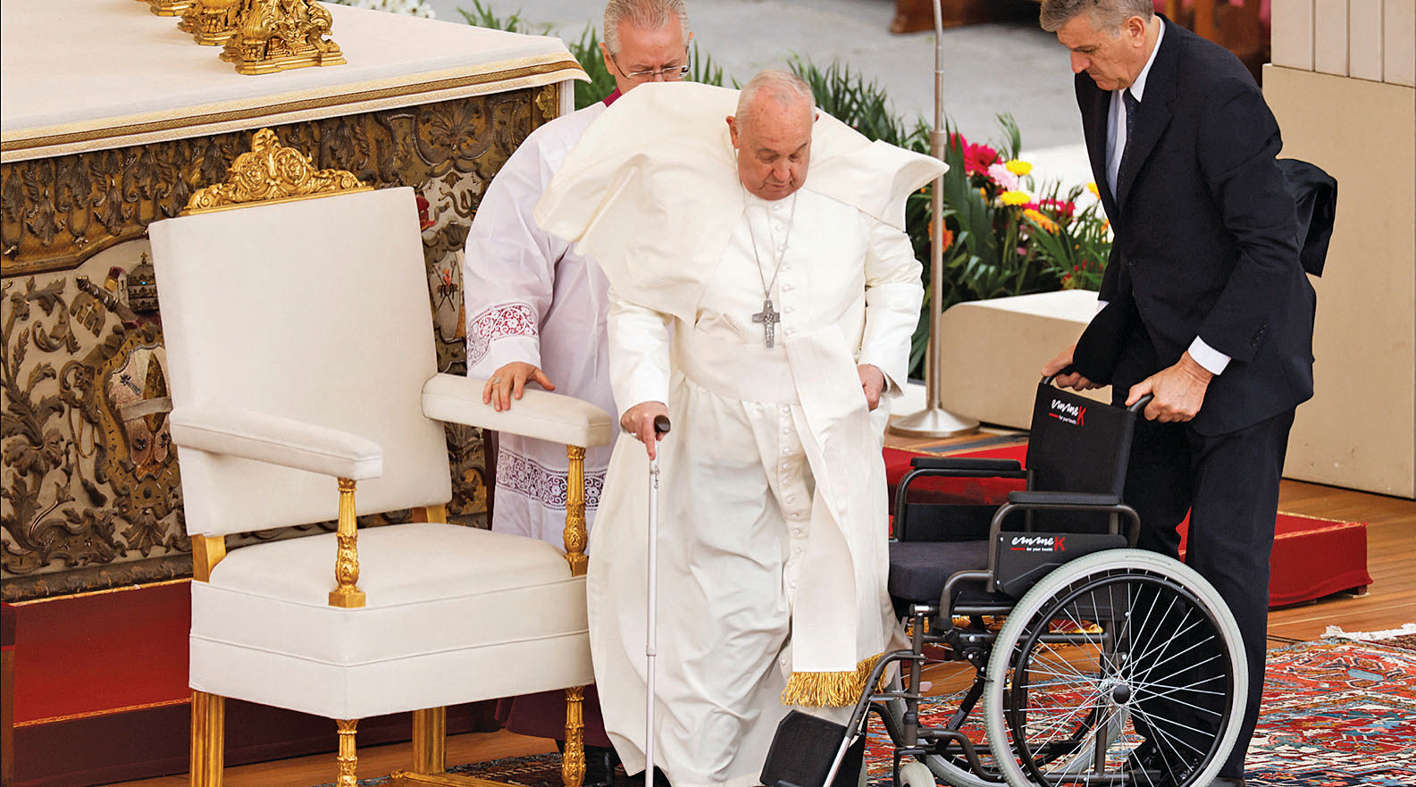 Ο πάπας προεξήρχε της λειτουργίας καθισμένος σε αναπηρικό καροτσάκι, λόγω του προβλήματος με το πόδι του.