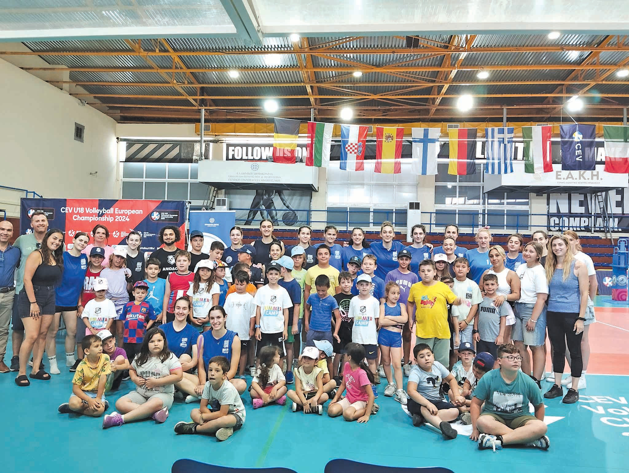 «Επίσκεψη» στην Εθνική ομάδα βόλεϊ κορασίδων, που προπονείται στο κλειστό γυμναστήριο του Λίντο, για το Πανευρωπαϊκό πρωτάθλημα Κ18, έκαναν τα παιδιά του Summer Camp του Ερασιτέχνη ΟΦΗ. Φώναξαν με δυνατή φωνή «καλή επιτυχία» στα κορίτσια της Εθνικής και ανανέωσαν το ραντεβού σε κάποιο απο τα παιχνίδια που η Εθνική ομάδα, θα δώσει 1-9 Ιουλίου, στο κλειστό γυμναστήριο του Λίντο. Οι αθλήτριες της Εθνικής ομάδας, δέχθηκαν με χαρά τους μικρούς αθλητές, φωτογραφήθηκαν μαζί τους και τους υποσχέθηκαν ότι θα δώσουν τον καλύτερο τους εαυτό, στα μεγάλα παιχνίδια που έρχονται.