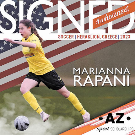 Μέλος της AZ Sport Scholarships έγινε η Μαριάννα Ραπάνη. Η 15χρονη ποδοσφαιρίστρια του Εργοτέλη, στοχεύει να κάνει το βήμα στην Αμερική το καλοκαίρι του 2023 όταν θα αποφοιτήσει από το Λύκειο. Η εταιρεία αξιοποιώντας την εμπειρία, την τεχνογνωσία καθώς και το δίκτυο επαφών που διαθέτει, εξασφαλίζει στους αθλητές-υποψήφιους φοιτητές, την αποτελεσματικότερη προώθησή τους στα καλύτερα πανεπιστήμια των ΗΠΑ. Η ταλαντούχα μέσος του Εργοτέλη είναι από τις νεαρότερες αθλήτριες του …ρόστερ της εταιρείας, ωστόσο διαθέτει ωριμότητα πάνω από την ηλικία της, στοιχείο πολύ σημαντικό, στην προσπάθεια που θα κάνει να εξασφαλίσει αθλητική υποτροφία στις ΗΠΑ και να ζήσει το όνειρο του κολλεγιακού αθλητισμού!