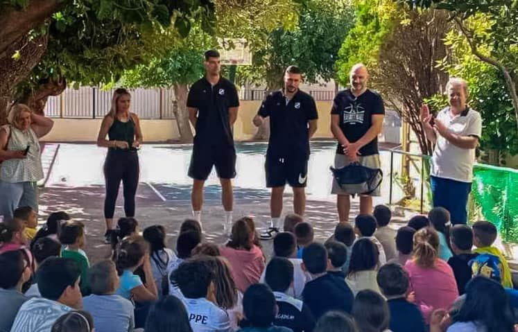 Θέλουμε να δημιουργούμε αθλητές, αλλά πάνω απ’ όλα καλούς ανθρώπους», τόνισε ο προπονητής των ανδρών Γιάννης Καλμαζίδης και ευχαρίστησε τον διευθυντή πρωτοβάθμιας εκπαίδευσης Ηρακλείου Μανώλη Μπελαδάκη, την αντιπεριφερειάρχη παιδείας Ελένη Μαράκη-Μπελαδάκη, τον διευθυντή του 49ου Δημοτικού Γιάννη Ιωσηφίδη, τους καθηγητές και τα παιδιά για τη φιλοξενία.