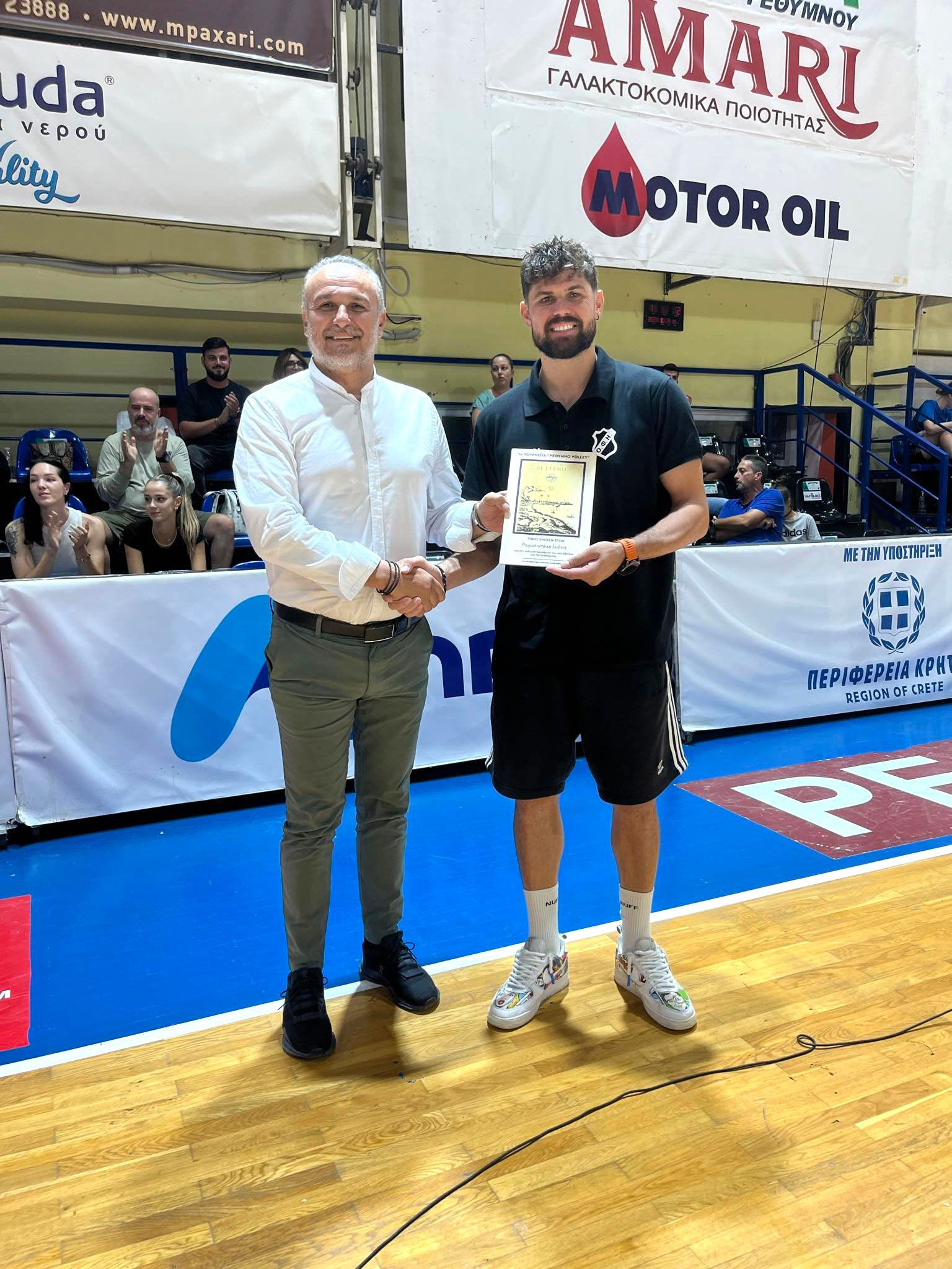 Τον προπονητή του ΟΦΗ Γιάννη Καλμαζίδη, αλλά και τον Γιάννη Ρουμελιωτάκη, τίμησε ο Ν.ΟΠΕΡ, στο περιθώριο του τουρνουά βόλεϊ που διοργάνωσε στο Ρέθυμνο. Τη βράβευση στον τεχνικό της ηρακλειώτικης ομάδας έκανε ο αντιδήμαρχος Αθλητισμού Νίκος Προβιάς ενώ τον Ρουμελιωτάκη τίμησε ο αντιπεριφερειάρχης Επιχειρηματικότητας Μιχάλης Βάμβουκας.