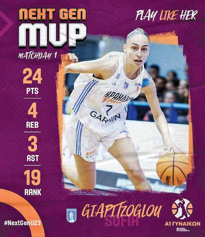 H Σοφία Γιαπιτζόγλου του Ηρακλή, ήταν η πρώτη που πήρε τον τίτλο της Next Gen MVP, ο οποίος αφορά τις νέες αθλήτριες που μπορούν να αγωνιστούν στην Εθνική ομάδα μπάσκετ γυναικών. Το ντεμπούτο της Ηρακλειώτισσας στην Α1 κόντρα στον Παναθλητικό, ήταν καταπληκτικό, παρά την ήττα της ομάδας της. Πέτυχε 24 πόντους, με 4 ριμπάουντ και τρεις ασίστ, κάνοντας για άλλη μια φορά υπερήφανους τους ανθρώπους του Ανδρογέα στον οποίο έμαθε μπάσκετ.