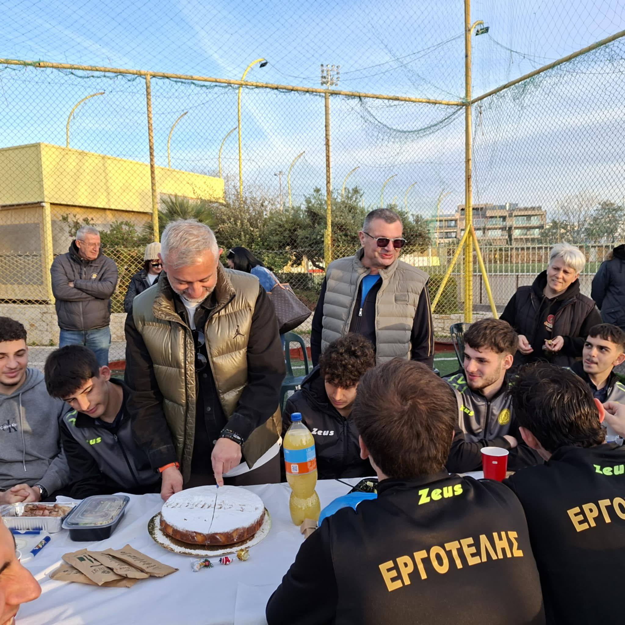 Μετά τη λήξη του αγώνα με τα Δειλινά, το ποδοσφαιρικό τμήμα του Εργοτέλη έκοψε την καθιερωμένη πρωτοχρονιάτικη πίτα στο γήπεδο, μέσα σε ζεστό και οικογενειακό κλίμα. Η ανδρική ομάδα, η ομάδα υποδομής Εργοτέλης Β’, μέλη της Διοίκησης και φίλοι του Συλλόγου βρέθηκαν όλοι μαζί, αντάλλαξαν ευχές για μια χρονιά με υγεία και επιτυχίες και απόλαυσαν ένα όμορφο μπάρμπεκιου, με τους υπεύθυνους του γηπέδου να έχουν ετοιμάσει ένα εξαιρετικό τραπέζι για όλους.