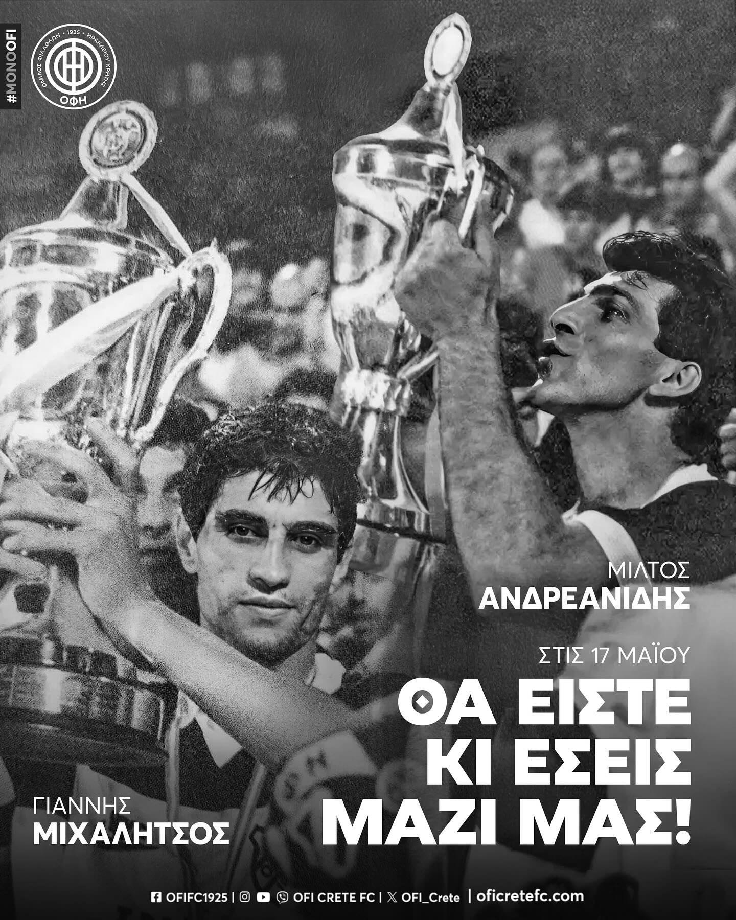 Ο Κιλκισιώτης Μίλτος Ανδρεανίδης αγωνίστηκε για μια δεκαετία (1982-1992) στον ΟΦΗ και έγινε Κρητικός ενώ ο Γιάννης Μιχαλήτσος έπαιξε μόλις δυο χρονιές(1986-88) αλλά στον ΟΦΗ κέρδισε τον μοναδικό τίτλο της καριέρας του και αγάπησε την ομάδα. Το μήνυμα του ΟΦΗ για τους δυο παίκτες αναφέρει: «Οι ήρωες δεν πεθαίνουν ποτέ! Μένουν για πάντα μαζί μας, στις καρδιές και τις σκέψεις μας! Στις 17 Μαΐου θα είναι εκεί…». Ν.Μ.
