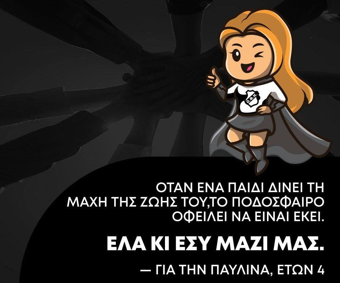 Η Παυλίνα χρειάζεται επειγόντως να κάνει μια πολύ σοβαρή επέμβαση στο εξωτερικό για να αντιμετωπίσει το σπάνιο σύνδρομο Abernethy. Είναι ένας αγώνας άνισος, αλλά όχι μοναχικός. Δεν είναι ένας αγώνας που παίζεται σε κάποιο γήπεδο,  είναι ένας αγώνας για τη ζωή. Όσοι επιθυμούν να τη στηρίξουν, μπορούν να απευθυνθούν στη Eurobank (IBAN: GR5002601360000140201179221, δικαιούχος Βαβουράκης Ρόλαντ Κώστας). Κάθε ευρώ μετράει…