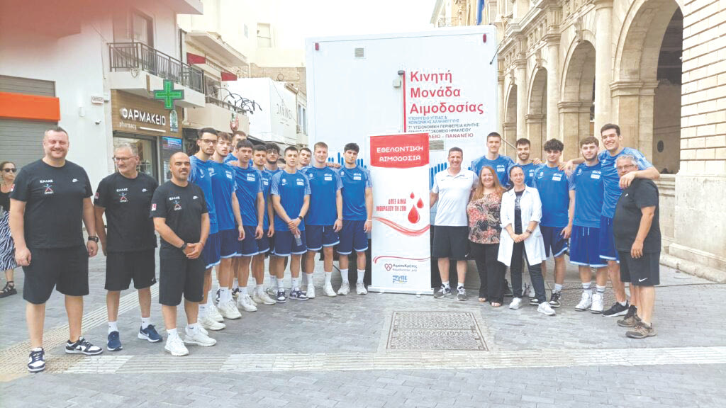 Προσφορά και μπάσκετ βρίσκουν κοινή οδό και την ακολούθησαν και στο Ηράκλειο με την παρουσία της Εθνικής Νέων Ανδρών στη δράση του εθελοντικού συλλόγου «ΑιματοΚρήτης». Πριν αναχωρήσει για την Αθήνα, η αποστολή της Εθνικής έδωσε το παρών στο κέντρο του Ηρακλείου, στο πλαίσιο της εκδήλωσης για την Παγκόσμια Ημέρα Εθελοντή Αιμοδότη. «Επιθυμία της ΕΟΚ ήταν και παραμένει να τιμήσει μία κοινωνική ενέργεια που αποτελεί δώρο ζωής, μέσα από την οργάνωση για δεύτερη συνεχόμενη χρονιά εθελοντική αιμοδοσία με κεντρικό σύνθημα «το μπάσκετ είναι στο αίμα μας» σε συνεργασία με Ενώσεις και Τοπικές Επιτροπές σε όλη την Ελλάδα», τονίζεται στην ανακοίνωση της Ομοσπονδίας.