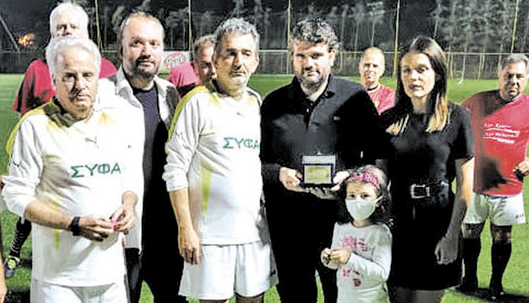 Δύο από τα παιδιά του εκλιπόντος, ο Μανώλης και η Πένυ παρέλαβαν την τιμητική πλακέτα από τους φίλους και συναδέλφους του εκλιπόντος που θα τον έχουν πάντα στην καρδιά και τη σκέψη τους…