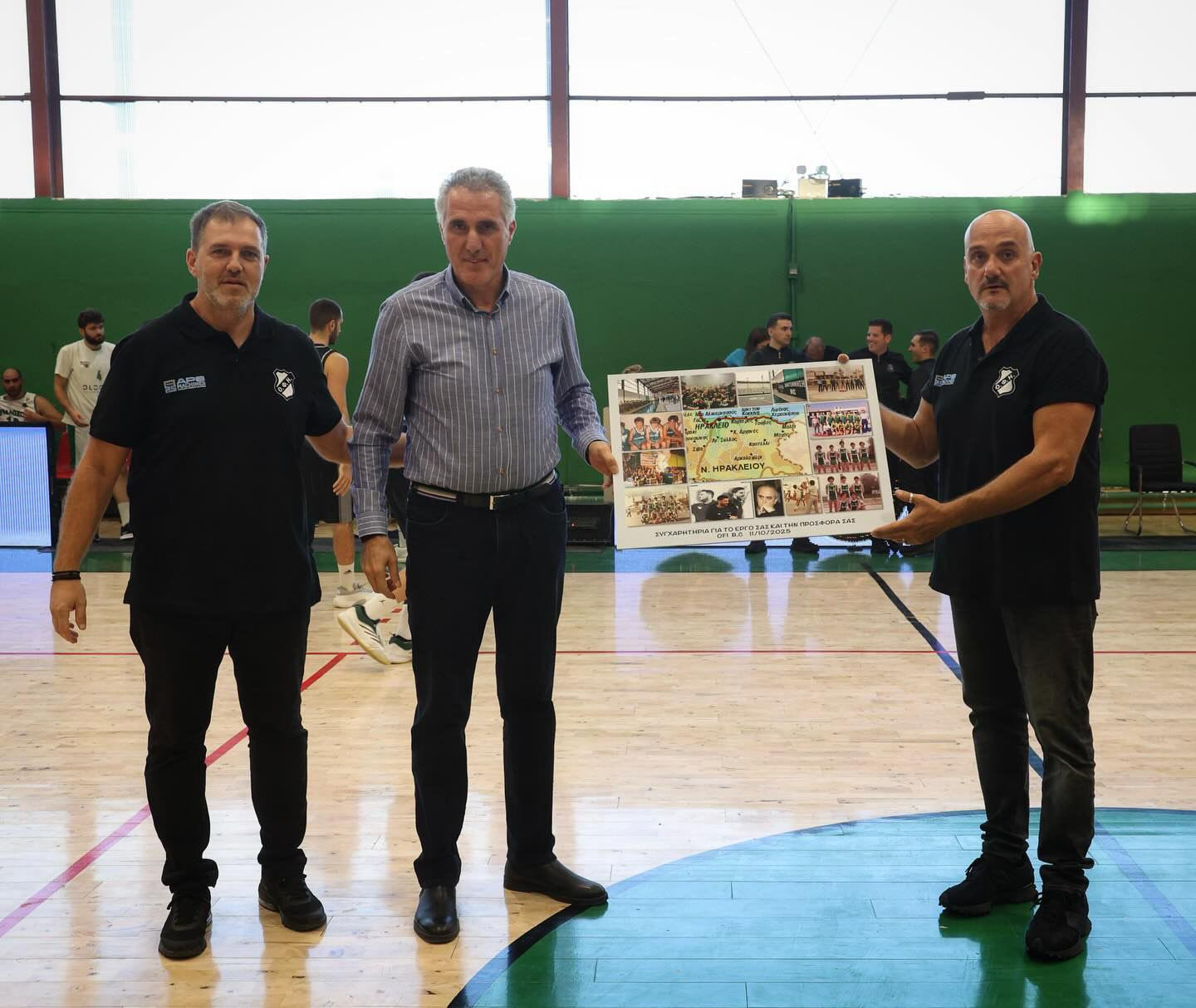 Στο ημίχρονο του αγώνα μπάσκετ ανάμεσα στην Αναγέννηση Αρκαλοχωρίου και τον ΟΦΗ, oι φιλοξενούμενοι τίμησαν την επιστροφή της Αναγέννησης στη φυσική της έδρα, στο ανακαινισμένο κλειστό γυμναστήριο Αρκαλοχωρίου, με μία ιδιαίτερη συμβολική κίνηση.
