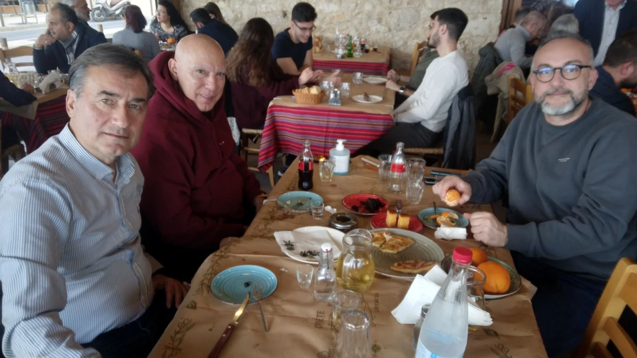 Ετσι και τώρα που ήρθε ο θρύλος του ελληνικού μπάσκετ στο Ηράκλειο για τον τελικό του Κυπέλλου μπάσκετ, οι δύο φίλοι συναντήθηκαν και ήπιαν το κρασάκι τους πριν πάνε στα “Δύο Αοράκια”. Μαζί τους και ο Χρήστος Κιούσης του “Ράδιο Αρβύλα”. Α.Π.
