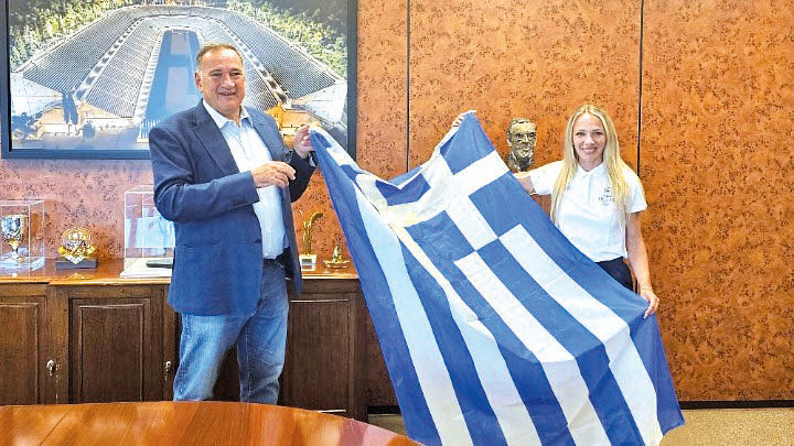 Σε μια συμβολική κίνηση προχώρησε ο πρόεδρος της Ελληνικής Ολυμπιακής Επιτροπής παραδίδοντας την ελληνική σημαία στη γυναίκα σημαιοφόρο της Ολυμπιακής ομάδας, Αντιγόνη Ντρισμπιώτη η οποία μαζί με τον Γιάννη Αντετοκούνμπο θα εμφανιστούν πρώτοι από όλες τις αποστολές στον ποταμό Σηκουάνα κατά την τελετή έναρξης των 33ων Ολυμπιακών Αγώνων.