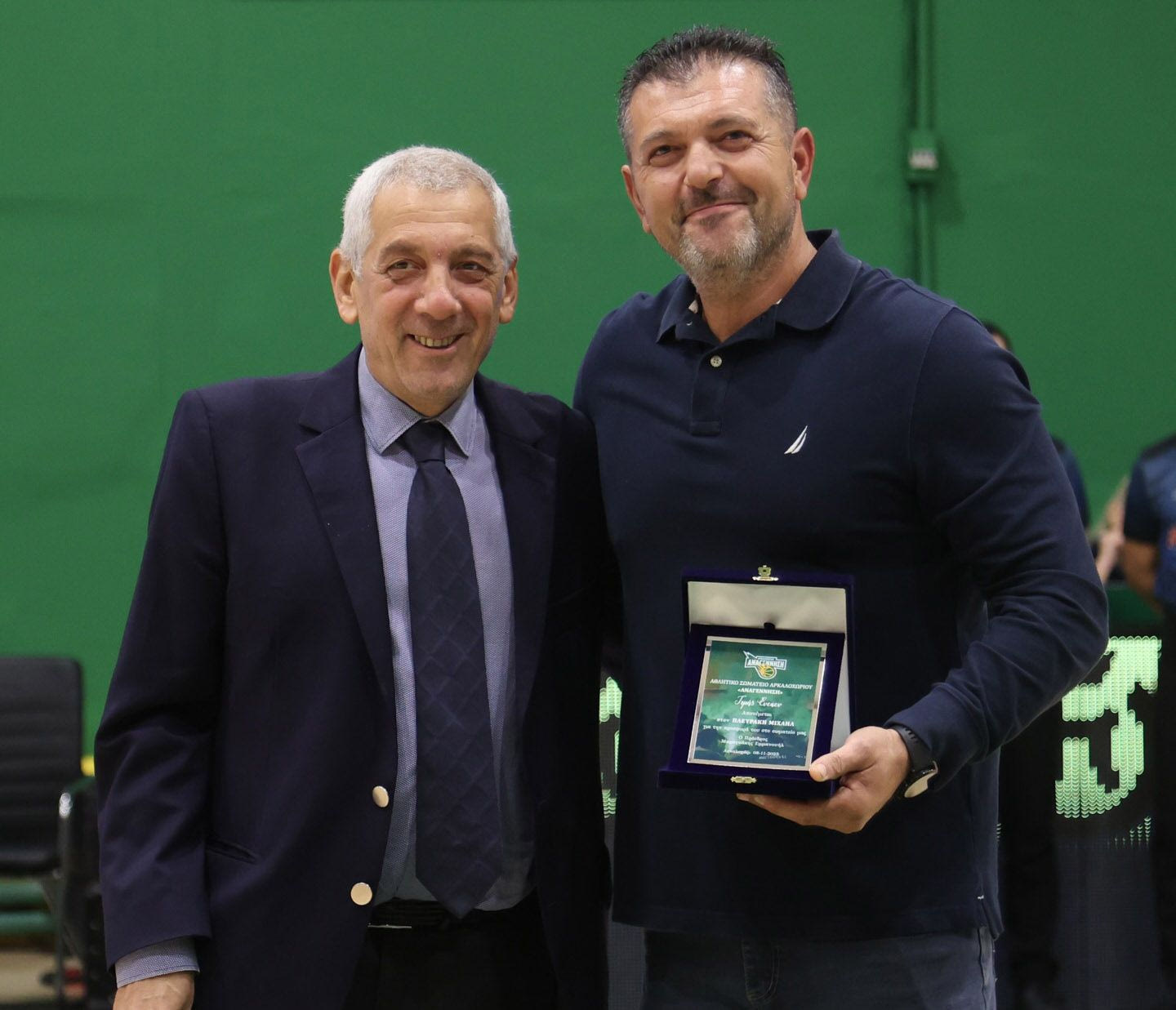 Τρεις μπασκετάνθρωπους βράβευσε στο πρόσφατο αγώνα της η Αναγέννηση Αρκαλοχωρίου: τον δημοσιογράφιο Βασίλη Σκουντή, με αμέτρητα χιλιόμετρα στα παρκέ εντός και εκτός χώρας, την πλακέτα του οποίου έδωσε ο δήμαρχος Μινώα, Βασίλης Κεγκέρογλου και τους πρώην παίκτες του συλλόγου, Κώστα Γαβριλάκη και Μιχάλη Πλευράκη.