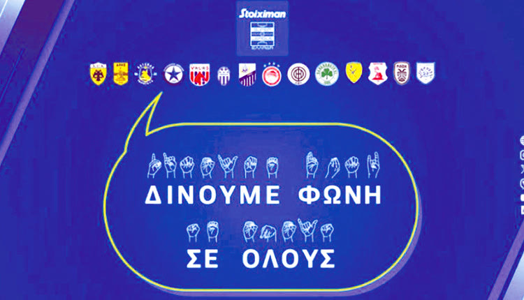 Οι παίκτες των ομάδων κατά την είσοδό τους στον αγωνιστικό χώρο θα φορούν μια λευκή μπλούζα που θα γράφει το «Stoiximan Super League» στο δακτυλικό αλφάβητο της νοηματικής, ενώ με τον ίδιο τρόπο θα είναι και το «Δίνουμε φωνή σε όλους», σε πανό.