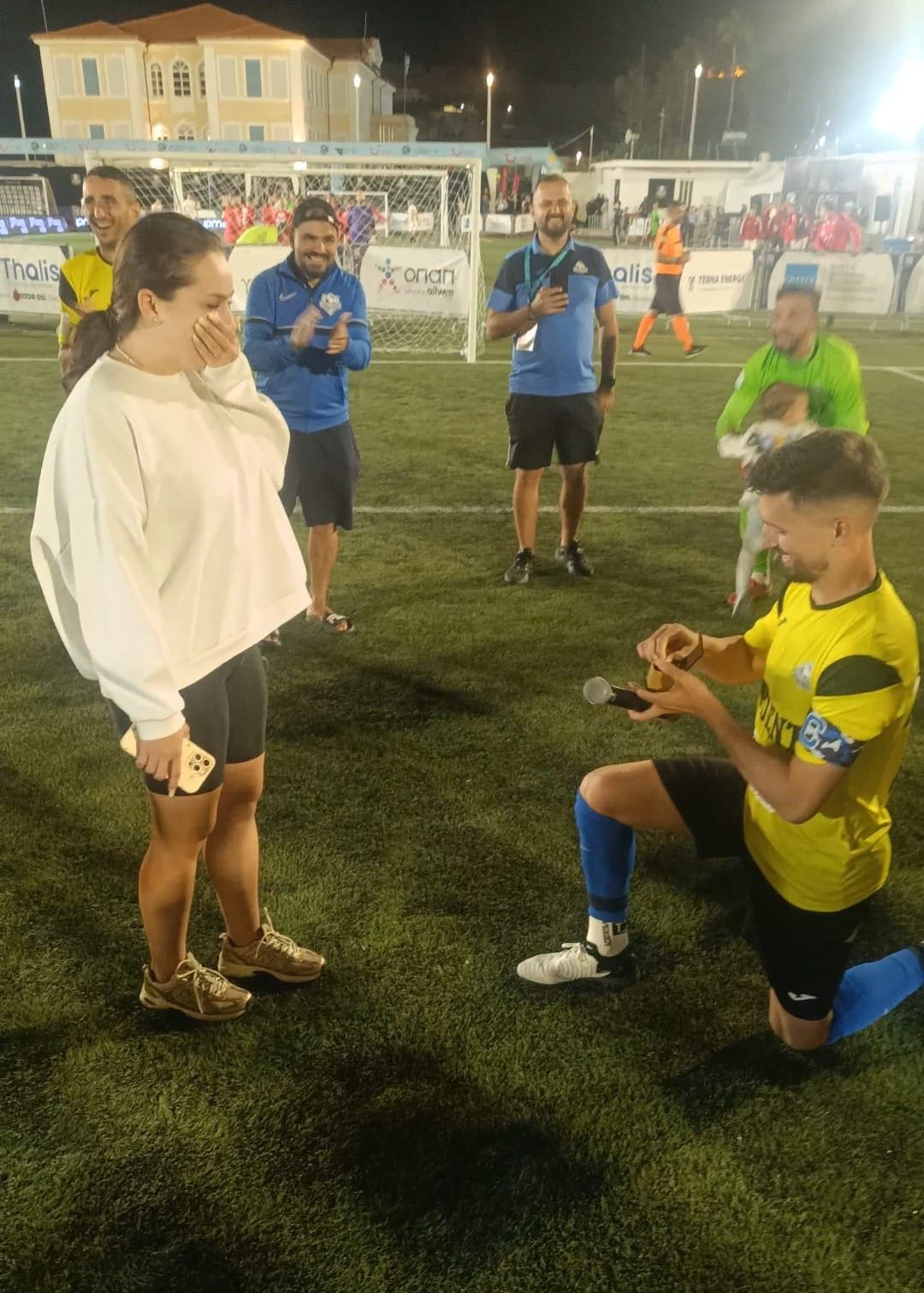 Μέχρι και πρόταση γάμου είχε το …μενού του ΤUI SOCCA Champions League που πραγματοποιήθηκε στο Ρέθυμνο. Πριν από την έναρξη της αναμέτρησης ανάμεσα στη ρουμανική ACS Dream Team και της AFC Αλούρ από το Καζακστάν, ο Ρουμάνος ποδοσφαιριστής Μιχάι Σκιόπου κάλεσε στο κέντρο του γηπέδου την αγαπημένη του Αντίνα, ενώπιον της οποίας γονάτισε, τής πρόσφερε το καθιερωμένο δαχτυλίδι και της ζήτησε να τον παντρευτεί. Η απάντηση φυσικά ήταν θετική. «Ελπίζω να επιστρέψουμε στο πανέμορφο και φιλόξενο Ρέθυμνο για τον μήνα του μέλιτος» τόνισε ο …μέλλων γαμπρός.