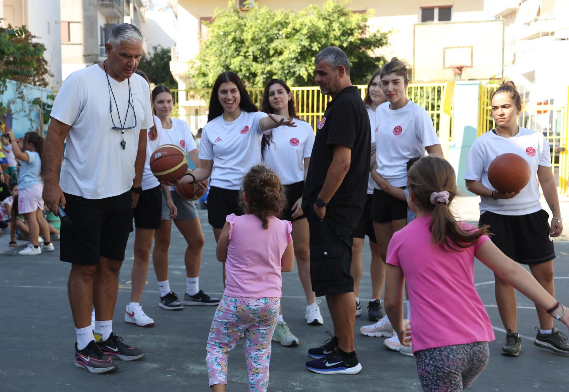 Τα συστεγαζόμενα 25ο και 27ο Δημοτικά σχολεία Ηρακλείου επισκέφθηκε ο Ανδρογέας στο πλαίσιο της Πανελλήνιας Ημέρας σχολικού αθλητισμού. Οι παίκτριες και ο προπονητής Μάνος Καρλάφτης πέρασαν ευχάριστες στιγμές με τα παιδιά, μαθαίνοντάς τους τα …βασικά του μπάσκετ και στο τέλος της δράσης, οι μαθητές έτρεξαν να αγκαλιάσουν τις αθλήτριες για να γίνουν μια «ομάδα» στο κέντρο της αυλής των σχολείων. Οι αθλήτριες προσκάλεσαν και τα δύο σχολεία στο πρώτο επίσημο παιχνίδι της ομάδας στην Α2, την Κυριακή 6 Οκτωβρίου στο Λίντο. «Ευχαριστούμε θερμά για τη φιλοξενία τις διευθύντριες, τους δασκάλους και τα παιδιά για την όμορφη μέρα», καταλήγει η ανάρτηση του Ανδρογέα.