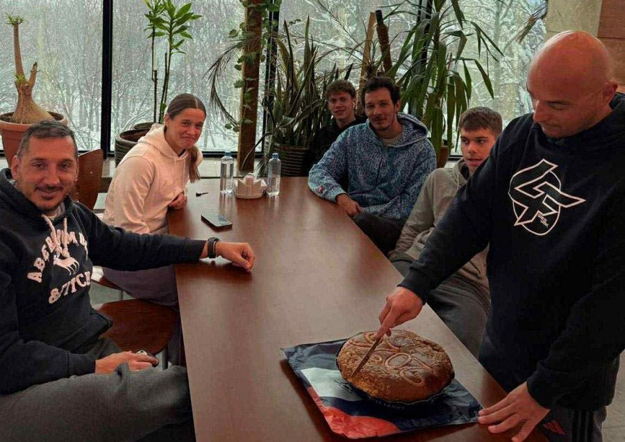 Μαζί τους οι προπονητές Νίκος Φλεριανός και Γιώργος Σούρδης και η φυσιοθεραπεύτρια Έφη Βούλγαρη. Ασφαλώς δεν…ξέχασαν τα πατροπαράδοτα έθιμα, όπως την κοπή της βασιλόπιτας και αντάλλαξαν τις ευχές για υγεία και επιτυχίες την νέα χρονιά.