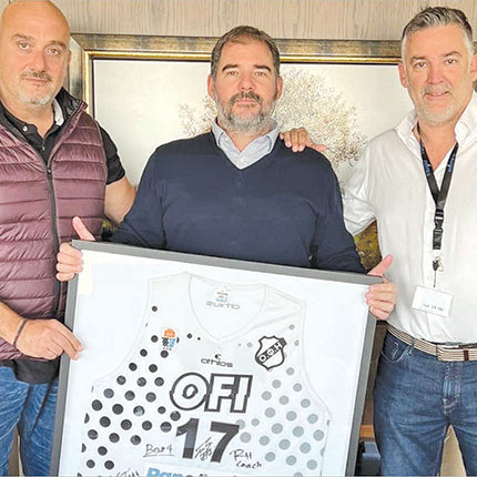 Το δώρο που παρέλαβε από την ομάδα, ήταν μια φανέλα του ΟΦΗ με τις υπογραφές των παικτών και κάρτες διαρκείας για το προσωπικό της Karatzis S.A.