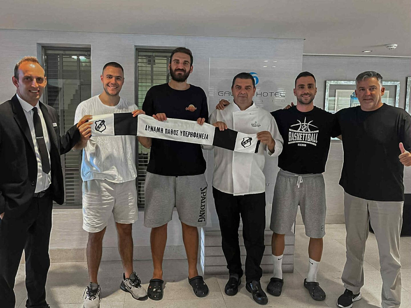 Για ακόμα μία χρονιά η οικογένεια Οικονόμου στέκεται αρωγός στην προσπάθεια της ομάδας μπάσκετ του ΟΦΗ στο πρωτάθλημα της National League 1. Στην καθιερωμένη συνάντηση που πραγματοποιήθηκε στο Galaxy Hotel, ο υπεύθυνος επικοινωνίας και marketing της ομάδας, Ηρακλής Σφακιανάκης, συνοδευόμενος από τους νεοαποκτηθέντες Χρήστο Σκάνδαλο, Βασίλη Μπαρδάκα, Πάβλε Τίτιτς, πρόσφεραν στον Μιχάλη Νηστικάκη (Maitre d’ hotel) και στον Στέλιο Μαρκατάτο (Executive Chef) κασκόλ και εισιτήρια διαρκείας, ως ένδειξη εκτίμησης για τη στήριξή τους. Η Επιτροπή Μπάσκετ του ΟΦΗ ευχαριστεί θερμά την οικογένεια Οικονόμου για την πολύτιμη υποστήριξη και τη μοναδική φιλοξενία τους.