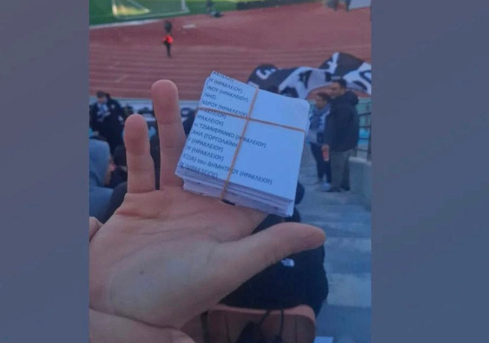 Τα χιλιάδες χαρτάκια που πέταξαν οι οπαδοί του ΟΦΗ πριν την έναρξη του Σούπερ Καπ το βράδυ του περασμένου Σαββάτου 3 Ιανουαρίου, ήταν κατά κύριο λόγο παλιά ψηφοδέλτια από δημοτικές εκλογές!
