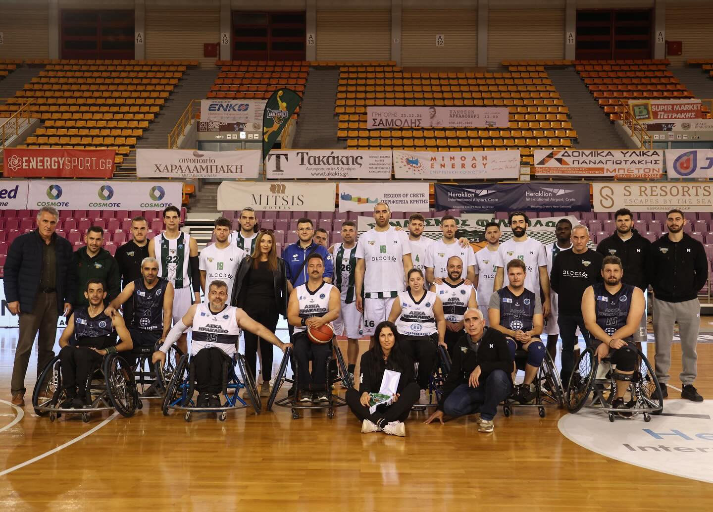Το συγκρότημα του Αρκαλοχωρίου παρέδωσε τιμητική πλακέτα στον ΑΣΚΑ Ηράκλειο, δίνοντας την υπόσχεση ότι η συνάντηση αυτή, θα έχει και… συνέχεια στο γήπεδο του ΑΣΚΑ. «Στηρίζουμε κάθε τέτοια προσπάθεια και θέλοντας να ευαισθητοποιήσουμε την κοινωνία μας, προβάλουμε το μπάσκετ με αναπηρικό αμαξίδιο.