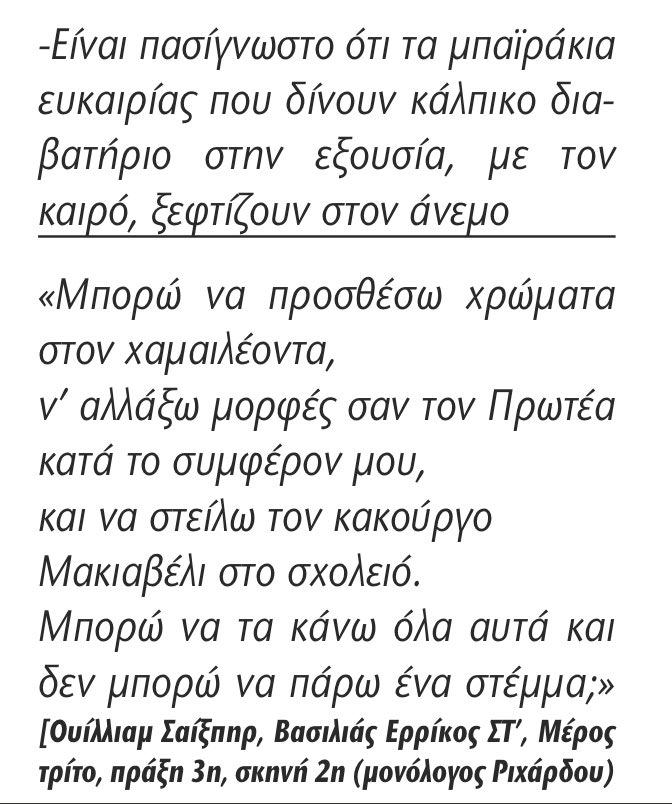 Κυρίως δε, στην τοπική αυτοδιοίκηση, όπως σε κάποιον ευφήμως γνωστό Δήμο με το -ιστορικά κεκαυμένο όπως την Πομπηία- πρώην βενετσιάνικο όνομά του. Ωστόσο, σε αυτήν εδώ την τελευταία, την αυτοδιοίκηση, οι έννοιες Δικαιοσύνη και Δημοκρατία δοξάζονται a la carte, στο ταρτουφικά επιχρυσωμένο περιτύλιγμα της τοπικής του διακυβέρνησης.