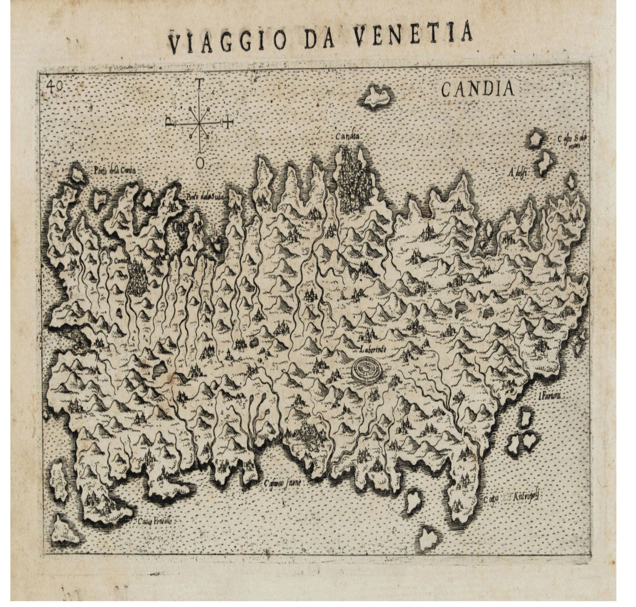 Ο Ιταλοί γεωγράφοι Giovanni Francesco Camocio και Giuseppe Rosaccio, λόγιοι του τέλους του 16ου αιώνα και δεινοί καταγραφείς του μεσογειακού κόσμου, συμπεριέλαβαν στους περίφημους χάρτες τους για την Κρήτη (Candia) τον «Laberinto», καταδεικνύοντας ήδη από τότε την Κνωσό και τον περιβάλλοντα τόπο της ως πυρήνα ιστορικής και μυθικής συνείδησης της ανθρωπότητας.