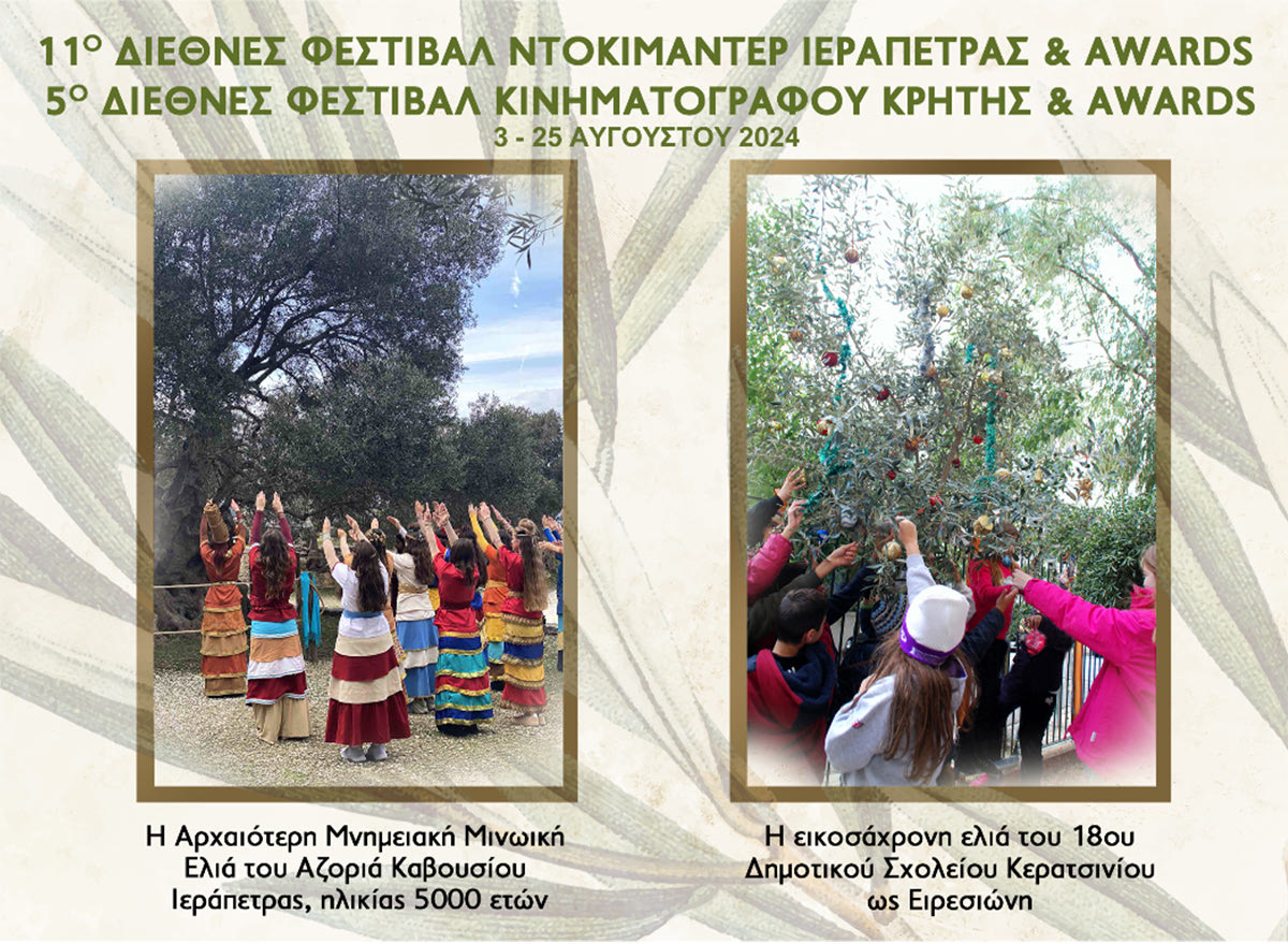 Στις αρχές του περασμένου Απρίλη η σκηνοθέτις και καλλιτεχνική διευθύντρια του «Διεθνούς Φεστιβάλ Ιεράπετρας & Awards» και του «Διεθνούς Φεστιβάλ Κινηματογράφου Κρήτης & Awards» Ελένη Βλάσση με την θεατροχορευτική της ομάδα βρέθηκε στο Καβούσι, μπροστά στην αρχαιότερη ελιά που σώζεται ως τις μέρες μας και που έχει χρονική απόσταση ζωής τρεισήμισι, ίσως και πέντε χιλιάδων χρόνων.