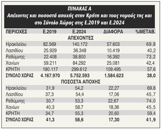 Από τον Πίνακα Α φαίνεται ότι στο Σύνολο Χώρας οι απέχοντες αυξήθηκαν κατά πάνω από 1.500.00 με αποτέλεσμα το ποσοστό αποχής στις Ε.2024 να πλησιάσει το 60%.