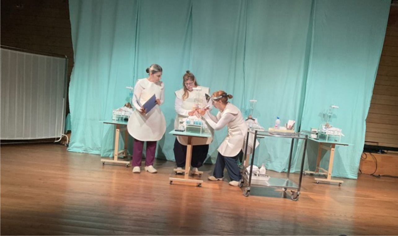 Παρατηρώ, ενδιαμέσως της παράστασης, τις εκφράσεις των νοσηλευτριών, βλέποντας να παίζεται πάνω στη σκηνή ένα παιγνίδι αρκετά γνώριμο, καθημερινή πραγματικότητα στην ουσία, γι’ αυτές. Υποψιάζομαι, προς στιγμήν, ότι και οι δικές μου είναι σχετικά παρόμοιες με τις δικές τους.
