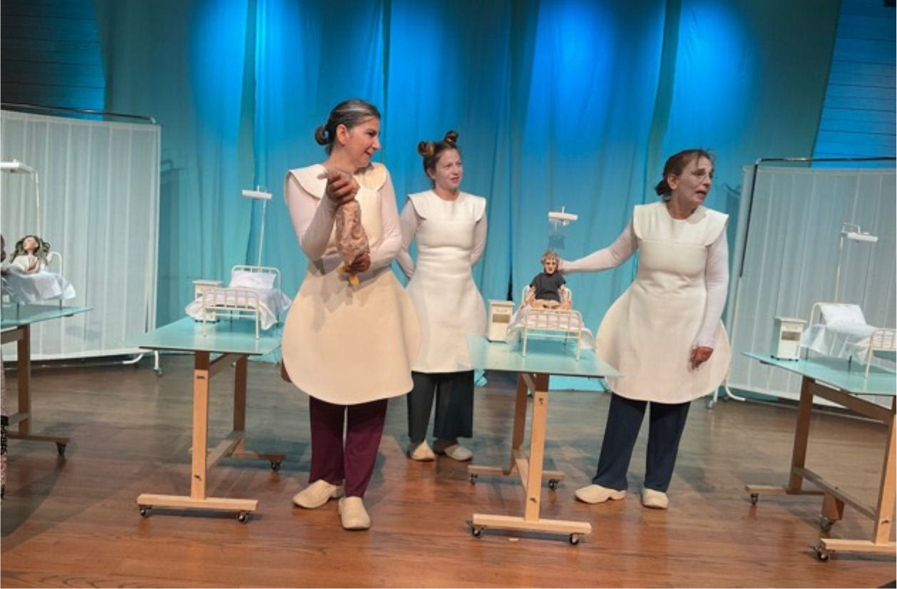 Το σκηνικό της παράστασης, απλό. Μια αίθουσα με τέσσερα κρεβάτια και ισάριθμες κούκλες οι οποίες υποδύονται τους ασθενείς. Οι παίκτριες, όλες γυναίκες, συνήθως σε ρόλο νοσηλευτή. Τα σκηνικά αλλάζουν ταχύτατα, σενάριο αρκούντως γνωστό άλλωστε σε αυτά τα νοσοκομειακά τμήματα, κάποιοι έρχονται, άλλοι φεύγουν, οι ιστορίες τους να ανήκουν πια στις πολλές του παρελθόντος και να χάνονται, αλλά το νοσοκομείο πάντα εκεί, ανοιχτό και γεμάτο.