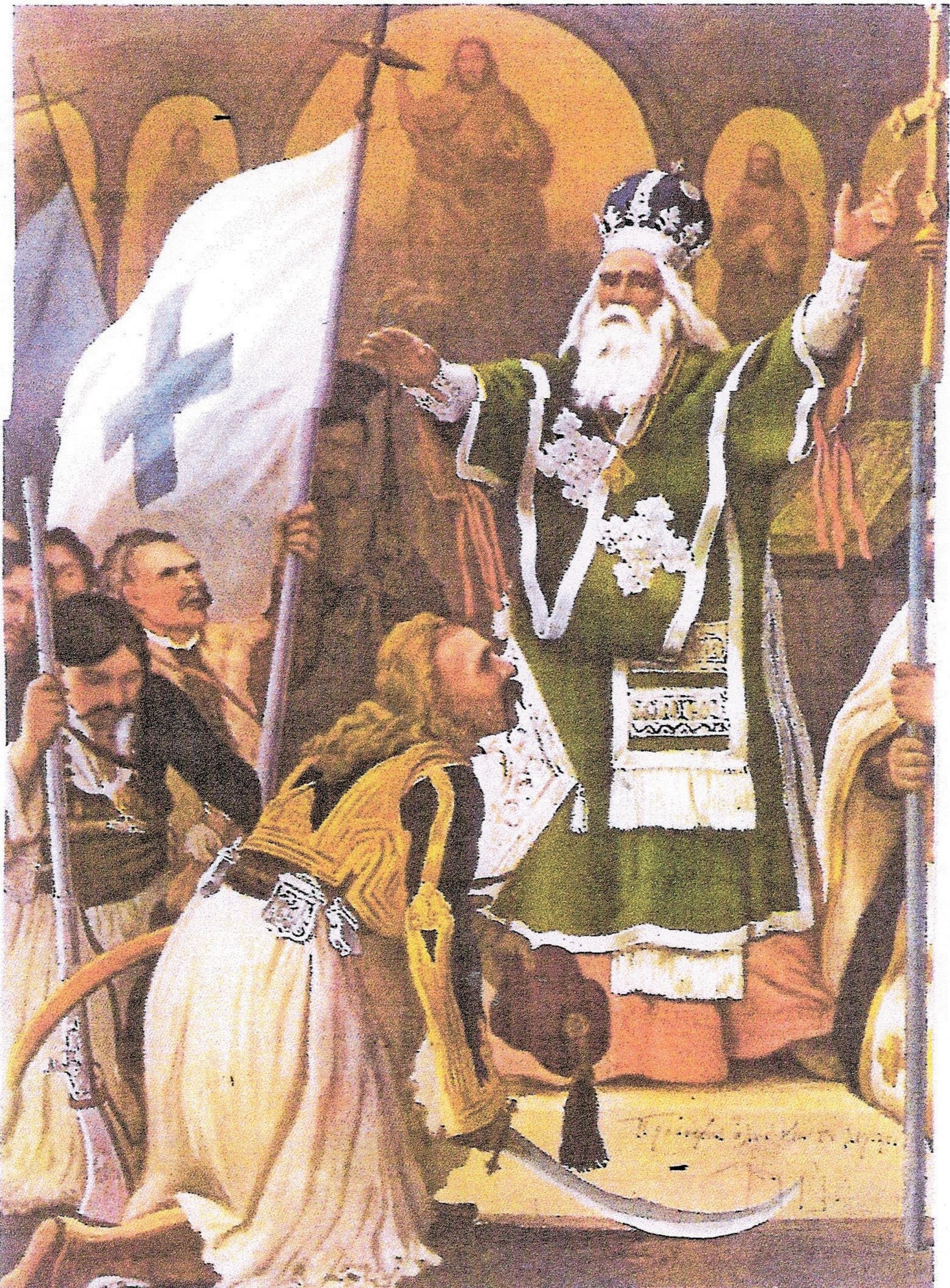 Παρακάτω παραθέτω επιλέγοντας από το αρχείο μου 2 γκραβούρες, 2 λιθογραφίες που αφορούν την επανάσταση του 1821 και πάνω σ’ αυτές χειρόγραφα ο Ν. Καζαντζάκης σημειώνει τις σκέψεις του.