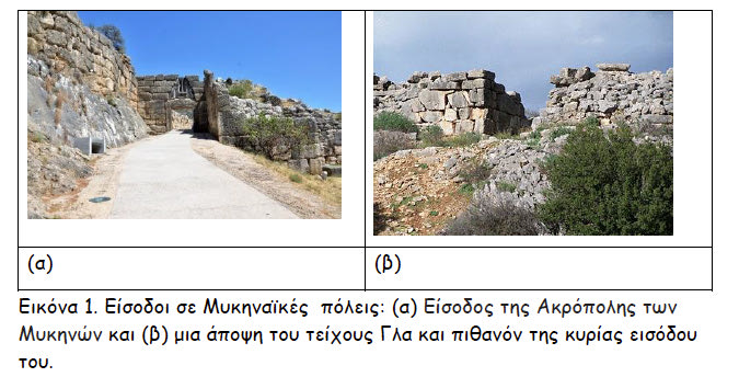 Σύμφωνα με το μύθο, οι απόγονοι του Περσέα βασίλευσαν στις Μυκήνες για τρεις γενεές (Μυλωνάς, 2005). Η είσοδος του ανακτόρου των Μυκηνών με τμήμα των ογκωδών κυκλώπειων τειχών, που προκαλούν και σήμερα ακόμη δέος, φαίνεται στην Εικόνα 1α.