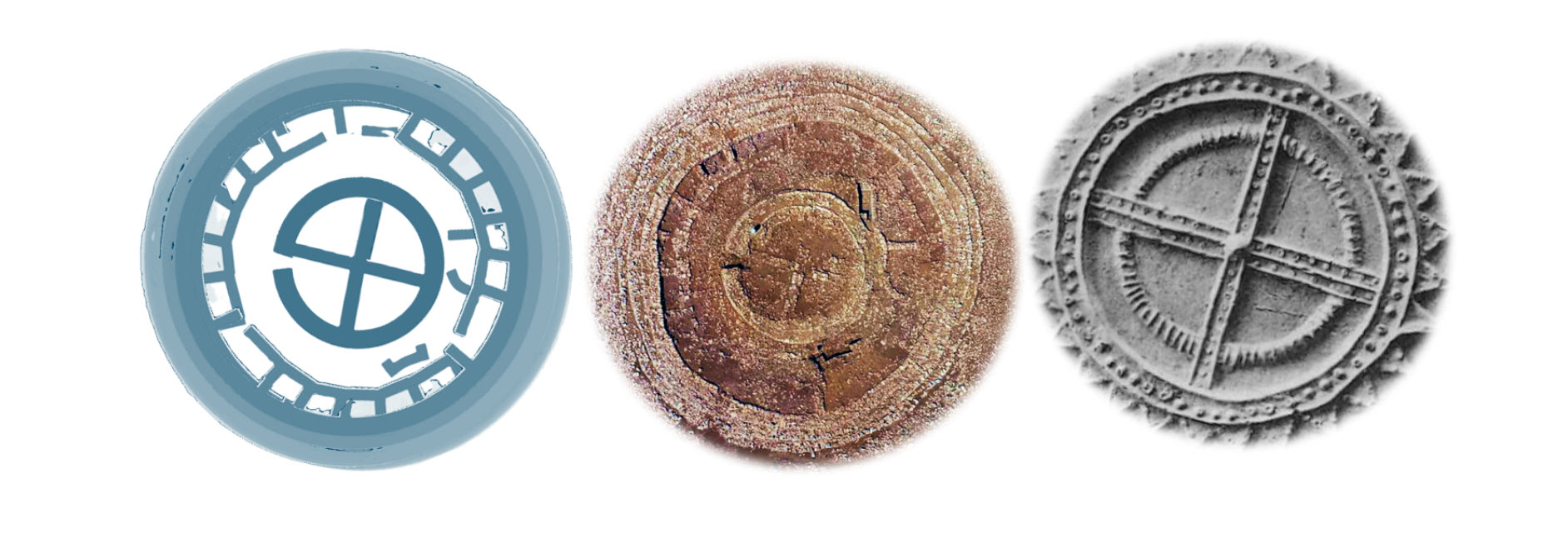 Εντυπωσιακές είναι και οι ομοιότητες με τον μινωικό αστρονομικό υπολογιστή του 1800 π.Χ., γνωστό από το χάλκινο καλούπι του με ομόκεντρους κύκλους, σταυροειδή διαίρεση, ημερολογιακές χαράξεις και πρόβλεψη των εκλείψεων.