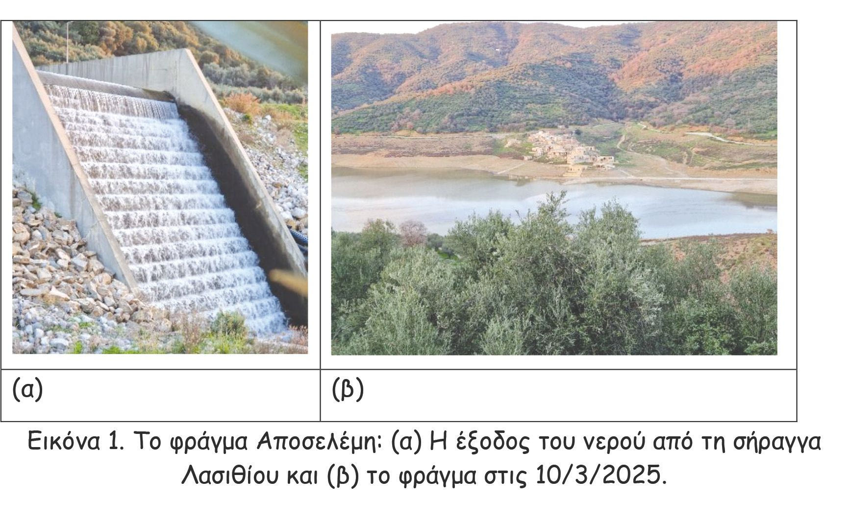 Δυστυχώς, το φράγμα Αποσελέμη δεν εμπνέει αισιοδοξία για την αποτελεσματικότητά του, αν συνεχίσουν περισσότερα ξηρικά υδρολογικά χρόνια, όπως τα τρία τελευταία. Η παροχή νερού από την σήραγγα του οροπεδίου Λασιθίου και η παρούσα κατάσταση του φράγματος σε σχέση με τον οικισμό Σφενδυλίου φαίνονται στην Εικόνα 1. Αυτό το έργο είναι άλλο ένα παράδειγμα κοστοβόρου έργου, που μακροχρόνια κινδυνεύει να μην εξυπηρετεί τις ανάγκες των πολιτών και να απαξιωθεί. Δυστυχώς τέτοια έργα στη χώρα μας τείνουν να είναι ο κανόνας. Αυτό οφείλεται κυρίως στον πλημμελή σχεδιασμό και στα μακρά περίοδο, που μεσολαβεί από τη μελέτη μέχρι την κατασκευή. Έτσι, συχνά δεν λαμβάνεται υπ’ όψη η πρόοδος στην παραγωγή νέας γνώσης και τεχνογνωσίας, που εν τω μεταξύ έχει παραχθεί, ώστε να κατασκευάζονται έργα σύγχρονα και κυρίως αποτελεσματικά. Σήμερα, π.χ. στο διεθνή επιστημονικό τύπο αναφέρονται εργασίες στο διεθνές περιβάλλον σχετικές με κατασκευαζόμενα φράγματα πολλαπλών χρήσεων.