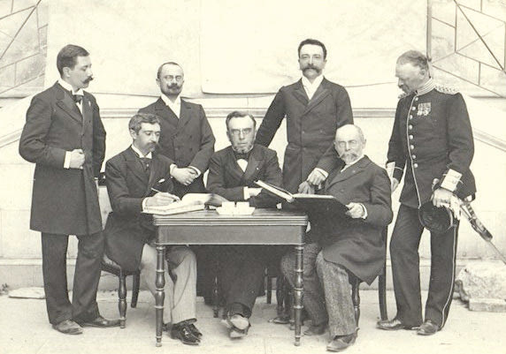 Στο ίδιο συνέδριο ο Βικέλας εκλέχθηκε πρώτος πρόεδρος τότε της Διεθνούς Ολυμπιακής Επιτροπής (φωτο στο κέντρο) αυτοβούλως δε, όπως γράφεται, πρότεινε τη διεξαγωγή των αγώνων στην Αθήνα. Έναν αιώνα αργότερα, οι αείμνηστοι διάδοχοι του Χουάν Αντόνιο Σάμαρανκ και Ζακ Ρογκ, 7ος και 8ος αντίστοιχα πρόεδροι της ΔΟΕ, συνδέθηκαν με την τέλεση των αγώνων στην Αθήνα το 2004, ο πρώτος όταν επιλέγη η Αθήνα το 1997 και ο δεύτερος στη διάρκεια της τέλεσης των αγώνων.