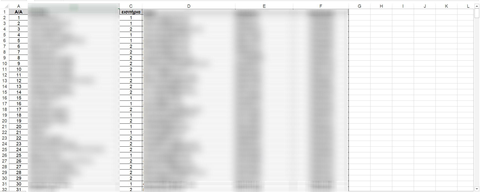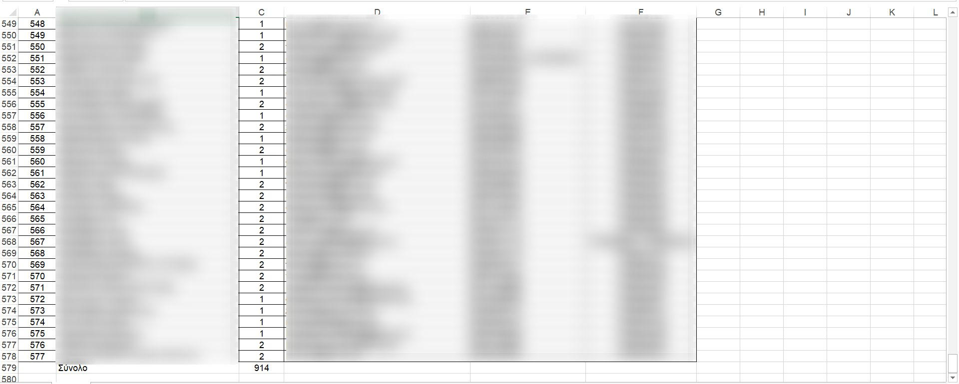 ΣΗΜ.: Επισυνάπτονται δυο σελίδες, η πρώτη και η τελευταία, από τις λίστες των πολιτών που εξέδωσαν δελτία εισόδου, με αλλοιωμένα τα στοιχεία για λόγους