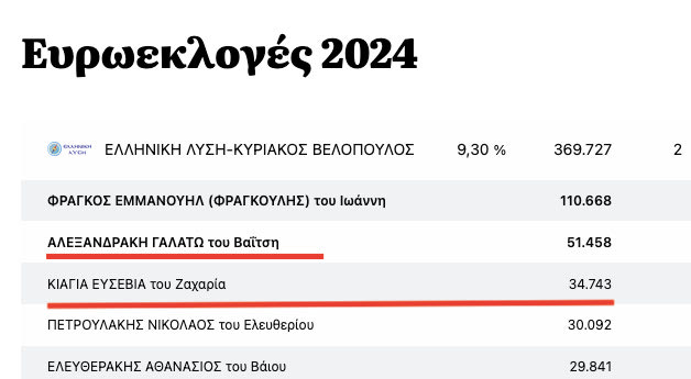 Σε αυτή την περίπτωση ποιος θα διαδεχθεί την κυρία Γαλάτω Αλεξανδράκη; Μα ο επόμενος! Ποιος είναι ο πρώτος επιλαχών στο ευρωψηφοδέλτιο της Ελληνικής Λύσης; Μα, η γνωστή Ηρακλειώτισσα γιατρός κ.Ευσεβία (Ευη) Κιαγιά του Ζαχαρία που πήρε σχεδόν 35.000 σταυρούς! Η κ.Κιαγιά, θυμίζουμε, ήταν υποψήφια με την Λύση και στις βουλευτικές εκλογές του 2023!