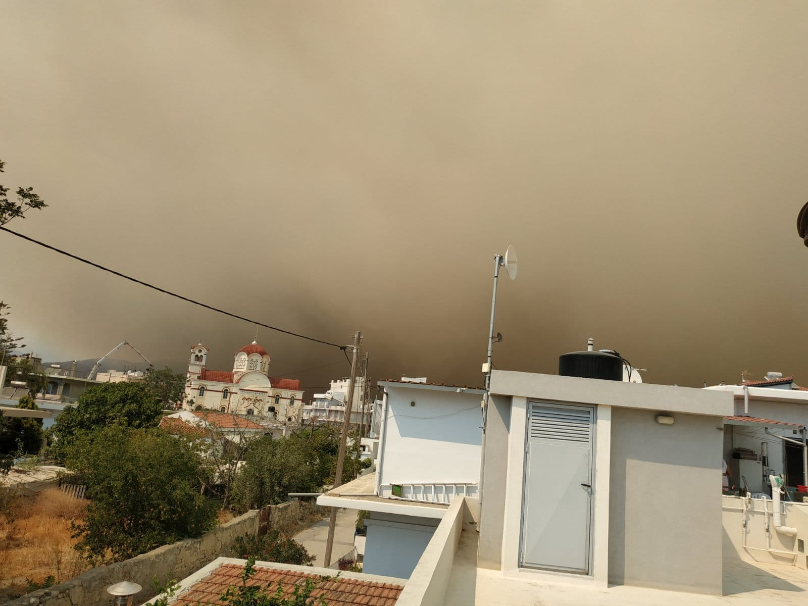 Μάλιστα, λόγω του καπνού και οι στάχτες από τα καμμένα έχουν φτάσει στις αυλές μας!