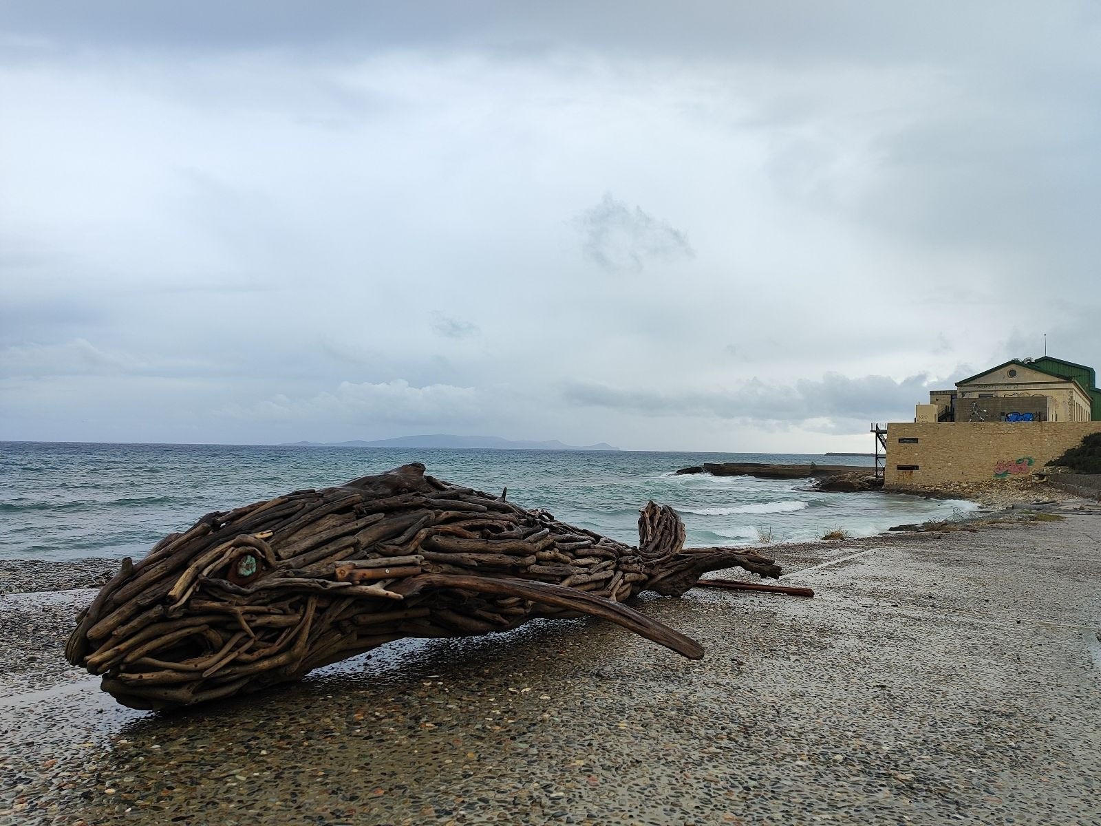 Σε ένα από τα σημεία που είχαν φτιαχτεί στην παραλιακή ως χώροι ανάπαυσης με παγκάκια, δίπλα στο Μουσείο Φυσικής Ιστορίας, στέκονται δύο όμορφα ξύλινα γλυπτά.