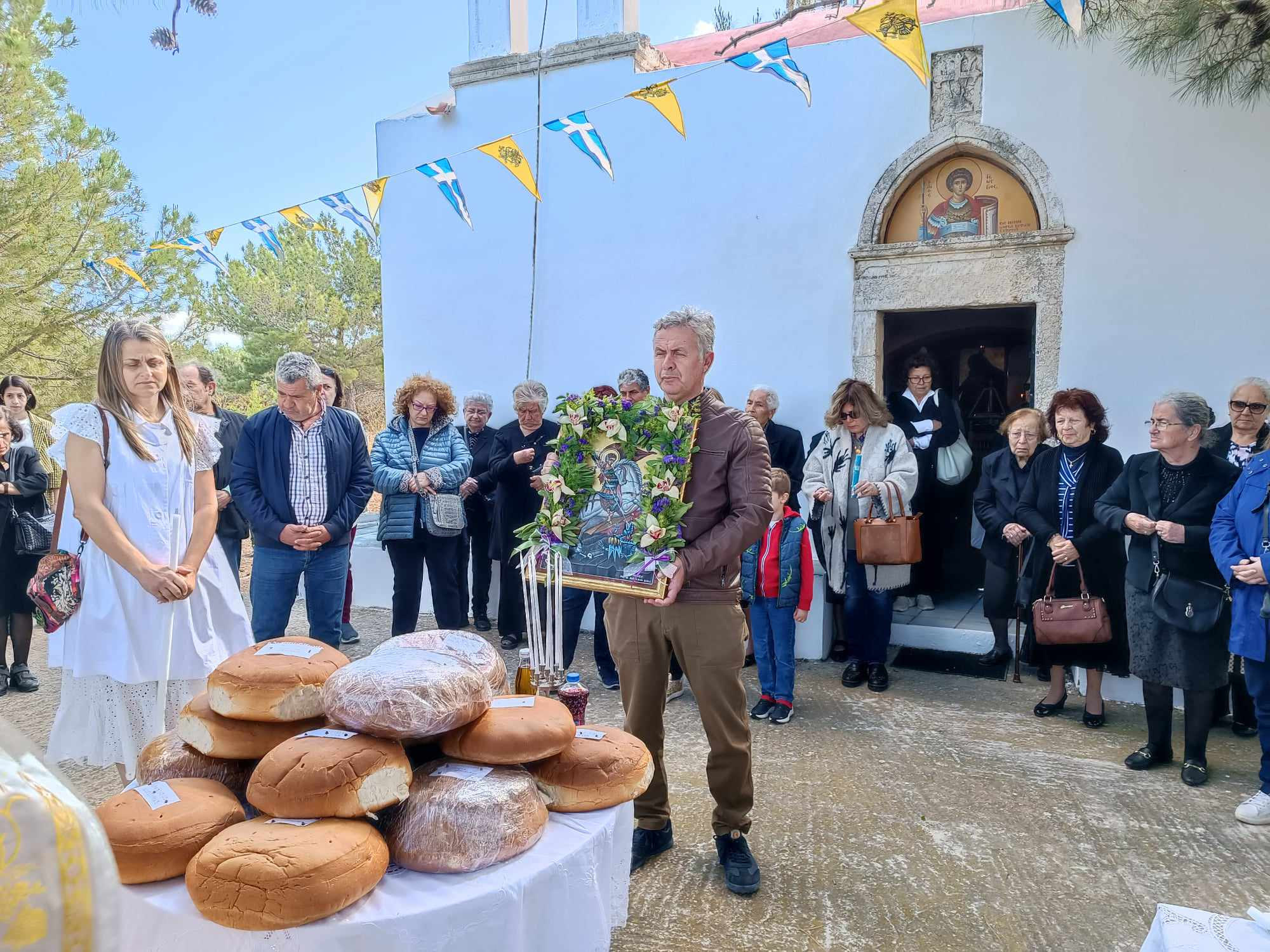Μετά την θεία λειτουργία και την αρτοκλασία, ακολουθούν κεράσματα και ευχές να είναι όλοι καλά, να σμίξουν και του χρόνου και να γιορτάσουν τον Άγιο Γεώργιο !