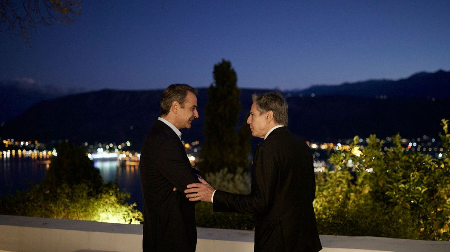 Ο Κυριάκος Μητσοτάκης έδειξε στον Άντονι Μπλίνκεν τον κόλπο της Σούδας και την αμερικανική βάση ενώ τον κέρασε καλτσούνια και ένα σφηνάκι ρακή .