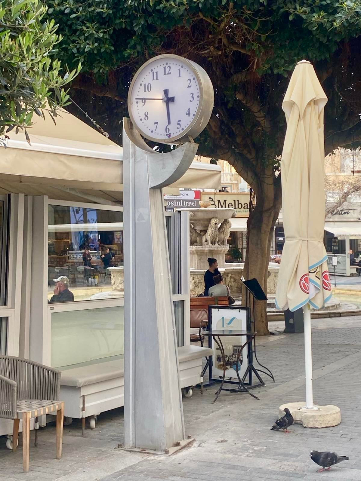 Το ιστορικό ρολόι στα Λιοντάρια, στην καρδιά του Ηρακλείου, αποκαταστάθηκε και λειτουργεί ξανά κανονικά, δείχνοντας την ώρα στους περαστικούς.