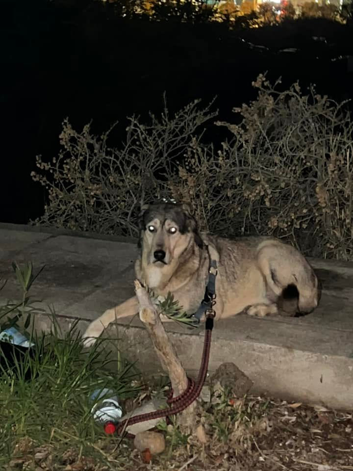 Περιμένει με ανυπομονησία το αφεντικό του, το οποίο χρειάστηκε εκτάκτως να μεταβεί στο νοσοκομείο μετά από πτώση και οι περίοικοι το έδεσαν εκεί μέχρι να επιστρέψει να το πάρει.