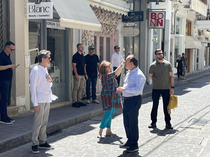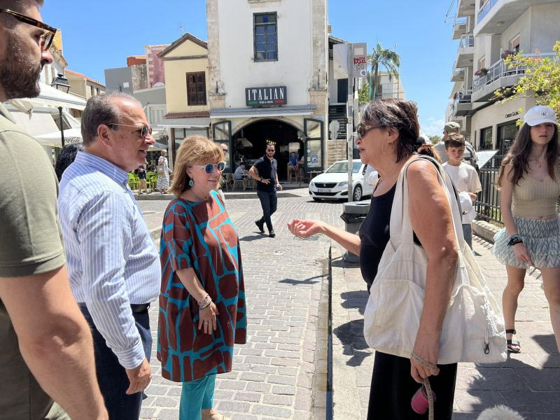 Ευδιάθετη και χαλαρή, μίλησε σε όλο τον κόσμο που την γνώρισε και την χαιρέτησε και τελικά μαζί με την παρέα της γευμάτισε στο εστιατόριο Corina στην παλιά πόλη, λίγο πριν αναχωρήσει από το Ρέθυμνο. Στο γεύμα βρέθηκε και ο Υφυπουργός Εθνικής Άμυνας Γιάννης Κεφαλογιάννης.