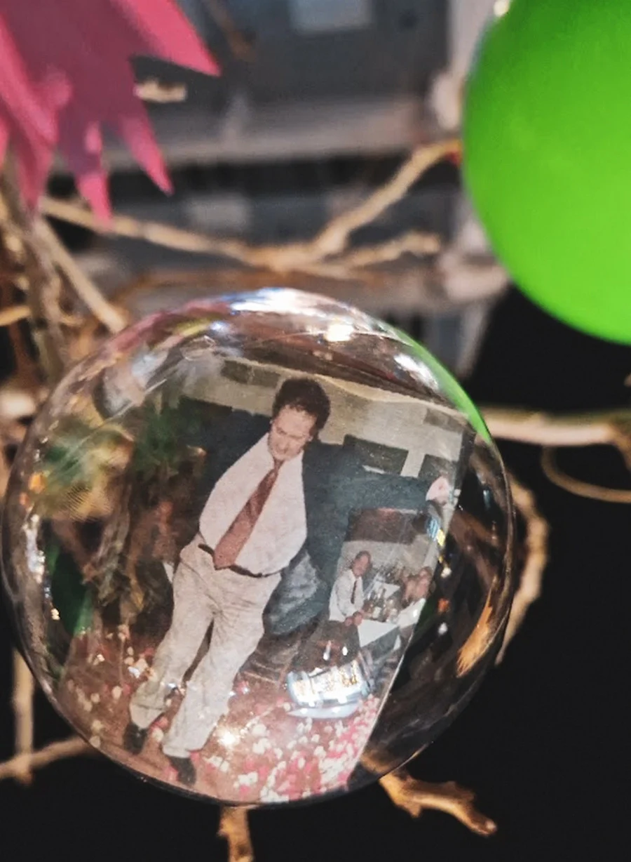 Το δέντρο, ύψους 3 μέτρων, δεσπόζει στο κέντρο της πόλης, φορώντας τα χρώματα του ΠΑΣΟΚ, ενώ στα κλαδιά του «κρέμονται» χαμογελαστοί πρώην υπουργοί, παλιές σημαίες του κόμματος, σήματα της