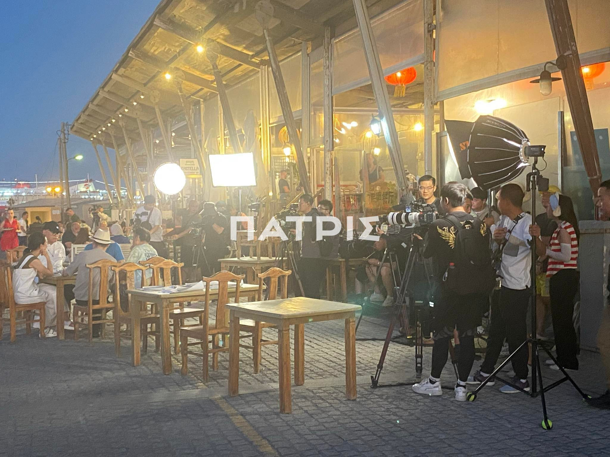 Ο φακός του patris.gr ”συνέλαβε” το βραδάκι της Κυριακής εν δράσει το τηλεοπτικό συνεργείο της κινεζικής τηλεόρασης.