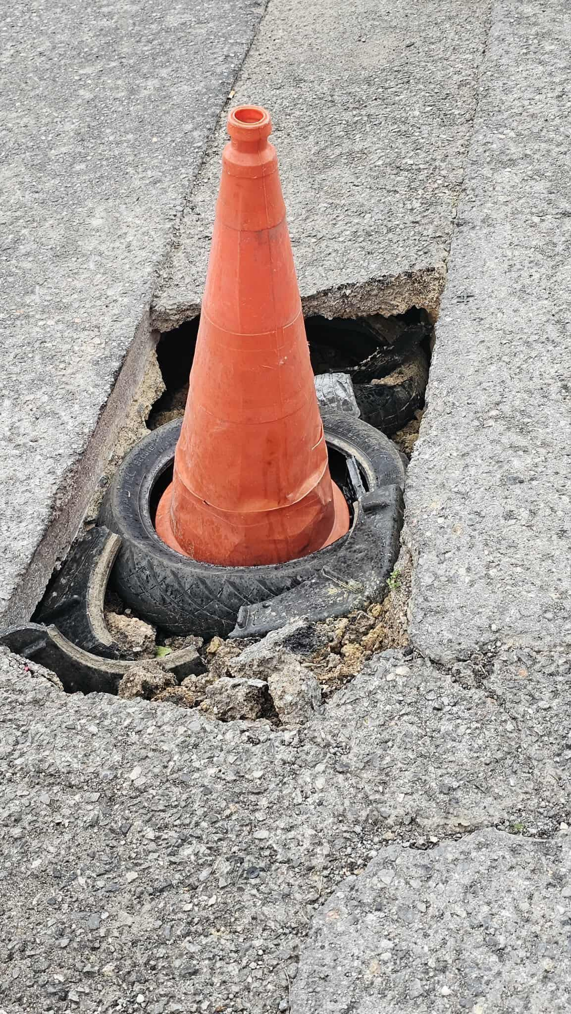 Με μία ρεζέρβα λάστιχου και ένα φθαρμένο κώνο ενημερώνονται οι οδηγοί και οι πεζοί του Ηρακλείου για μία λακκούβα… παγίδα που υπάρχει σε δρόμο της περιοχής.